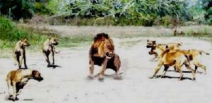 罗德西亚脊背犬大战非洲雄狮