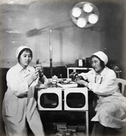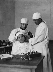 | 031-连队卫生员,动物有病也得看 | 032-连队卫生员 | 033-陆新华在医院小药厂 | 034-读新闻、一师医院(吴海平) 一师被服厂(马希平) | 035-前排广播员(张润杰)、打字员(吴海平)、话务员(王国艳) |
