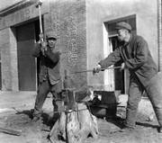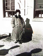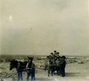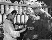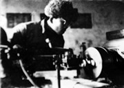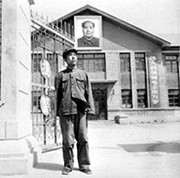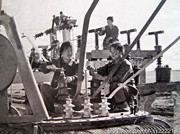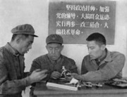 187-一师直属连,71年冬季,正在架设跨黄河通8团的电话线 | 188-一师师部门口是天津知青孙勇 | 189-一师水泵厂2车间车工班技术切磋 |