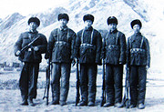 194-千里山第一只矿山队 | 195-一师直属连部分天津战友。后排左起孙勇,赵铁刚,李永良,赵学忠。前排左起魏忠会,高双元,菜元利。 |