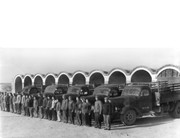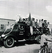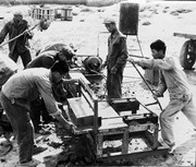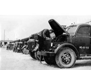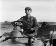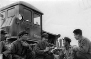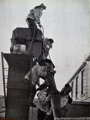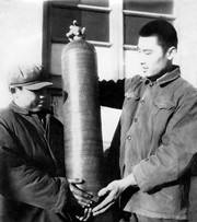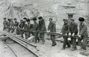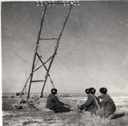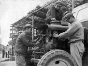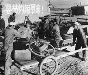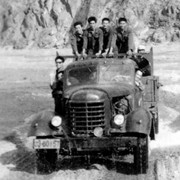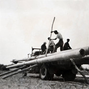 201-为连队早日通电,机运连从200里外运送高压电线杆,没有吊车,战士们硬是人工将电杆装在车上。 |