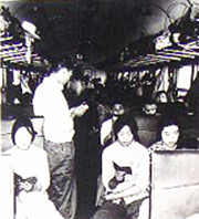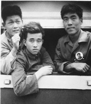 | 46-出发火车上(6师68团6连) | 47-知识青年手捧着毛主席语录,再见了爸爸,妈妈!就是带着这样的激情,离别了家乡,离别了亲人,走向了内蒙古。(1969年)