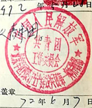 38-中国人民解放军北京军区内蒙古生产建设兵团第一师后勤部(共青团工作委员会(公章) |
