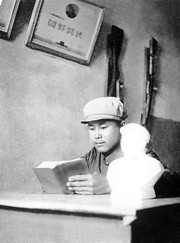 039-条件尽管艰苦,兵团战士们还是一遍再一遍的郎颂着毛主席语录,顽强的应对着所有的艰难险阻。 |