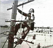 079-直属连的电工们以继夜的为全师电路的早日畅通忙碌着 |