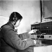 076-话务员张淼在为各级首长快速的接通电话,让师部最新指示快速通过有线电话通信线路,传达到各团,各连。 |