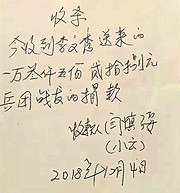 李文秀战友代表捐款人移交现款 |