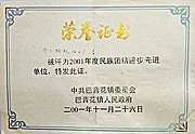 2001年民族团结进步先进单位 |