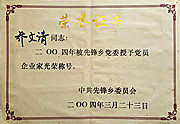 2004年先锋乡党员企业家 |