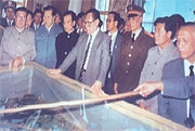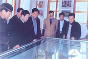 (图一) 1964年4月8日乌兰夫同志陪同邓小平同志、彭真同志来我盟磴口县黄河三盛水利枢纽参观 (图二) 1990年9月27日中共中央总书记江泽民同志来我盟磴口县视察黄河三盛公水利枢纽工程 (图三) 1990年9月27日,江泽民总书记在我盟视察期间,做客农家,了解民情 (图四) 1990年9月27日江泽民总书记、温家宝同志在自治区党委书记陪同下,来我盟磴口县黄河三盛公水利枢纽参观 (图五) 2001年10月19日内蒙古自治区党委书记诸波来我盟磴口县视察三盛公水利枢纽工程 (图六) 1990年9月27日中共中央总书记江泽民同志为巴彦淖尔提词: 加强民族团结,振兴巴彦淖尔! (图七) |