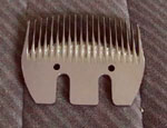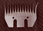 | 01A系列剪羊毛刀片:这种弯齿刀片设计科学,可最大限度提高剪毛效率,分为左手型和右手型,适合比较熟练的剪毛手使用 01D系列剪羊毛刀片:这是一种标准的直齿定刀片,用于剪羊尾毛,粘接性大的毛,适合初学剪毛的人使用 01G系列剪羊毛刀片:这种刀片用于秋季剪毛,特殊设计的形状,可以使剪过的羊体留下一层毛,保证羊安全过冬 F20系列剪牛毛刀片:这种刀片用于对牛、羊毛的精修剪,也适合修剪毛革等 F9系列剪牛毛刀片:这种刀片是一种改进型的秋季剪毛用刀片,也可剪羊、马、牛等油脂多,粘接性大的毛 02B系列剪羊毛刀片:这种四齿动刀片用途广泛,厚度分4.5,4.1,3.5三种,可以和01A,01D,01G,B12,F9各类定刀片配合使用 02C系列剪羊毛刀片:这是一种窄形三齿动刀片,可安装在外形窄小的剪头上,与10齿定刀片配用 01H系列(10齿定刀片)剪羊毛刀片:窄形定刀片,可安装在外形窄小的剪头上 F35系列剪牛毛刀片:细密齿的刀片,分为粗剪、短剪、精剪三种类型,用于对马毛、牛毛的修剪 F19系列剪牛毛刀片:19齿动刀片,与F35及F18定刀片配合使用 F18系列剪牛毛刀片:这种刀片,齿数较少,更利于剪切粘接性大的牛、马畜毛 |