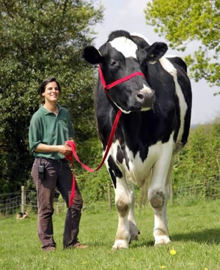 英国这头名叫"辣椒"的奶牛如同一头小型象,被称为"温和的巨人",其站立时身高为6英尺6英寸(合1.95米),比普通的奶牛高30厘米之多。此外,"辣椒"重一吨多,虽然算不上世界之最,但绝对算的上是一头巨型奶牛,而且,9岁的"辣椒"还在成长中。尽管身材高大,"辣椒"只喜欢吃草,偶尔吃点蕉青甘蓝当点心。目前世界上最高的牛在意大利,高是6英尺8英寸,"辣椒"超过这个高度是早晚的事情。 |