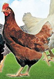 伊萨褐蛋鸡: 是世界著名的蛋用品种,原产法国,我市1988年引进。体型中等,雏鸡可根据羽色自别雌雄,成年母鸡羽毛呈褐色并带有少量白斑,蛋壳为褐色,父母代:70周龄入舍母鸡产蛋量247枚,产蛋期存活率91%。商品代:高峰期产蛋率92%,入舍产蛋量308枚,入舍产蛋重19.25千克,平均蛋重62克,产蛋期料蛋比为2.4~2.5:1,产蛋期存活率92.5%,产蛋期耗料每日每只115~120克。