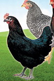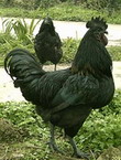 澳洲黑鸡:全身羽毛黑色而富有光泽,喙、胫、趾均呈黑色,脚底呈白色。母鸡6月龄开产,平均年产蛋量160个左右,蛋重约60克, 蛋壳褐色。略有就巢性。成年公鸡体重3.75公斤左右,母鸡2.5-3公斤。