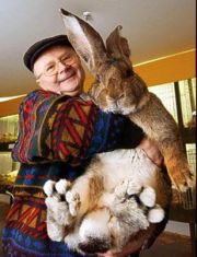 | 英国一只3岁大的雌兔,凭借1.2米的身长和22公斤的体重,成功打破世界纪录,获得“世界最大兔子”的桂冠。据主人爱德华兹介绍,这只兔子名叫“艾米”,现在体重22公斤,食量惊人。如果身体伸展开,体长达1.2米。艾米每天的食物都要花10英镑左右,每餐都要吃掉2个苹果、几个胡萝卜、半颗卷心菜以及几把干草。由于食物过多,爱德华兹不得不用狗盆给艾米当碗。而由于体型过大,艾米不得不睡在狗窝。爱德华兹说,艾米对食物很挑剔,“胡萝卜必须是带绿色叶子的,干草也必须是新鲜的、绿色的,否则她不吃。”据悉,此前世界上最大的兔子是艾米的配偶“罗伯特”,2004年,罗伯特从后腿到前爪的长度为1.05米,体重15.9公斤,当时这个体重要比3岁的孩子还要重。艾米比罗伯特小1岁,2004年时它只有0.5米长、6公斤重。但是现在它无论是身长还是体重都超过了罗伯特,因此当之无愧成为世界上最大的兔子。艾米和罗伯特都属于欧洲巨兔。目前两只兔子已经孕育出32个后代。欧洲巨兔平均体重6公斤左右,寿命可达12年。目前,吉尼斯世界纪录已经停止了类似巨兔的评选,以防止主人过度喂养宠物带来的负面影响。 |