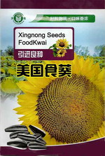 FH601: NWS373:上市早、籽粒好,商品价值高,生育期约92-98天,株高160厘米,长势旺,根系发达,籽形指数2.2*1.0厘米,种皮黑色有白边,千粒重169克。种皮薄,出苗快,易全苗。目前(2013年度无病害报告。)亩产220-270公斤左右,是国内科技含量最高的宽长粒形品种之一。 NWS398:上市早、嗑食好,商品价值高,生育期约98天,株高165厘米,长势旺,根系发达,籽形指数2.2*1.0厘米,种皮黑色有白边,皮薄易嗑食,千粒重171克。 三道眉:叶片繁茂,一般株高180厘米,株型收剑,生育期95-100天左右,秆粗3厘米,叶片数为37片左右,花盘直径30厘米左右,籽粒大,商品性极强,一般亩产500-800斤。栽培要点:一般亩用种500克,株行距60-70厘米,亩保苗1600株,在特殊情况下,可采用人工授粉或蜜蜂传粉。 美国食葵:该品种从美国引进。生育期100-110天左右,耐水肥耐瘠薄,抗向日葵霜霉病和锈病,平均株高150-160厘米。茎秆粗壮、抗倒伏,盘径平均25-28厘米,果皮灰黑色带有白色带纹,亩产可达300公斤左右,是食用向日葵的理想品种。栽培要点:亩用种量:100-120g,株行距50×70厘米,开花期应注意避开高温和多雨季节,该品种可套种可间种为增加产量,在花期放置蜜蜂进行辅助授粉或人工授粉2-3次,加强水肥管理,注意防治病害。 5209食葵:春播102天,夏播95天,株高180厘米。花盘直径22-26厘米,种皮黑色略带条纹,长粒型,籽粒长度2.3厘米左右,千粒重172克,商品性好,籽仁率高。该品种抗病抗倒伏,耐旱耐盐碱,适应性强。 一般亩产(667m2)250公斤,最高可达350公斤。 食葵一号:早熟食用向日葵,生育期春播115天左右,夏播95天左右。株高1.6-2.6米左右,花盘直径30厘米左右,籽粒饱满,耐旱,耐盐碱,抗病,高产。增产潜力大,商品性好,经济效益显著。 食葵KF5036: 峰华食葵101:本品种系早熟食用杂交种,全生育期100-110天,株高160-170厘米,分枝分杈极少,花盘直径25~35厘米,一般亩产300公斤,人工授粉加灌溉条件下高产可达400公斤,籽粒长19~22毫米,籽粒宽6~8毫米,籽粒厚4~5毫米,饱满度好,黑白条文,商品性极高。栽培要点:既能春播,又能夏播;既能纯种,更宜套作。峰华食葵春播生育期115天,夏播生育期98-100天。大面积纯种,肥力差保苗5000-7000株;肥力中等4000-5000株;肥力好的3000-4000株。边行优势显著,非常适宜与西瓜、甜瓜、棉花、冬瓜等作物套种。 葵LD5019 长粒型:美葵系列LD5019 一,特性:该品种属中熟品种,生育期95-102天,株高150-170厘米,平均茎粗3.4厘米,适应性广,种皮薄,出苗好,易抓苗;抗病性强,结实好,产量高,皮薄但不脱皮,易入味,口感好,有光泽,颜色高,商品性好.大田生长整齐一致.平均花盘直径26厘米,单盘粒重156克左右,大田表现花盘均匀一致,盘口紧密结实;平均百粒重18.6克,籽粒饱满,结实率高,产量表现自然出众,高产田水肥条件好,管理得当,产量可提高到750斤以上,籽粒长2.15厘米以上,宽0.9厘米,种皮黑色带白边间有白条纹,颜色较为黑亮,比LD5009皮色略浅,也是各炒货商所深爱的一种商品籽粒,加上其大田生产的商品整齐一致,不容易混杂,更是得到了众多炒货商的追捧,收购价也是目前所有商品中价格较高的.在内蒙、新疆、甘肃、宁夏、陕西等地均得到了种植户,种子经销商,炒货商的一致好评!适应区域:全国主要食葵种植区种植。 美长嗑c20:长粒,嗑食好,收益高,生育期与5009相同,株高175厘米,长势旺,根系发达,授粉结实率高,籽形2.2×0.85cm。种皮黑色带条纹,一般亩产230-360kg,市场上畅销品种之一。 皇家H59:长粒,特抗病,收益高,籽粒长度2.2公分,宽1.1公分。生育期105天左右,株高与5009相同,抗倒耐旱,适应性强,授粉结实率高,高产稳产,种子长粒黑色带条纹,易嗑食,亩产220-300kg,炒货商喜爱品种之一。 美葵SH909:审定编号:蒙审葵2006007号 品种名称:SH909(秦丰S5) 选育单位:美国斯蓓蒂公司(SPECIALTY COMMODITIES INC.)品种来源:2002年美国斯蓓蒂公司以不育系A04599为母本,恢复系B039为父本杂交 选育的三系杂交种。 特征特性:幼苗:幼茎及主叶脉均为绿色。茎粗2.3cm。株高142.3cm左右,叶柄中短,叶尖呈锐角,叶片呈长心脏形,叶缘中度,叶片数25片。花盘开花期较平,直径19.2cm左右,花盘黄色,舌状花鲜黄色,籽粒辐射状,排列紧密,不易落粒。籽粒长1.57cm,宽0.75cm,中宽椎形,黑底白边稍有条纹,百粒重10.6g,籽仁率50.5%。 凯福瑞LD5009:中晚熟,生育期115天左右。株高1.8米,叶片数30-32,茎杆粗壮,抗倒伏能力强。开花授粉好,结实率高达88-92%。花盘大,约20-25厘米。单粒长2-2.2厘米,宽0.9厘米,百粒重16.8-17.0克,籽粒黑皮白色条纹,干籽不脱皮。2006-2007年多点试验平均亩产350.58公斤,比对照增产29.83%。 NWS5109:黑长粒,高产,收益高。生育期105天左右,株高175厘米,长势旺,根系发达,籽形指数2.2×0.88cm,种皮黑色或浅黑色,略带条纹,一般亩产230-350kg,市场上畅销品种之一。 NWS3548:生育期105天左右,株高1.85米,生产试验对照909,籽粒比其长,比其黑,但比其窄,在内蒙每亩2450株的密度,粒长2公分,宽度0.8公分,盘径约24公分,随机五个盘均重0.16公斤,结实率89,抗性好,亩产约370公斤。 皇家L509:长黑粒,籽粒美,生育期比5009早熟约3天,商品籽粒极类似,籽长约2.2公分,籽身上浅黑色带条纹,最高亩产达350公斤,炒货商深爱品种之一。 NWS45009A:长粒,嗑食好,收益高,生育期103天左右,株高175厘米,抗倒耐旱,适应性强,籽形2.2×0.8cm。种皮黑色有白边,皮薄易嗑食,最高亩产350kg左右,炒货商喜爱品种之一。 NWS45009B:黑长粒,高产,收益高,生育期105天左右,株高175厘